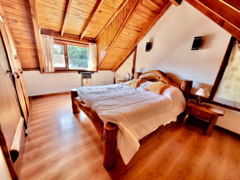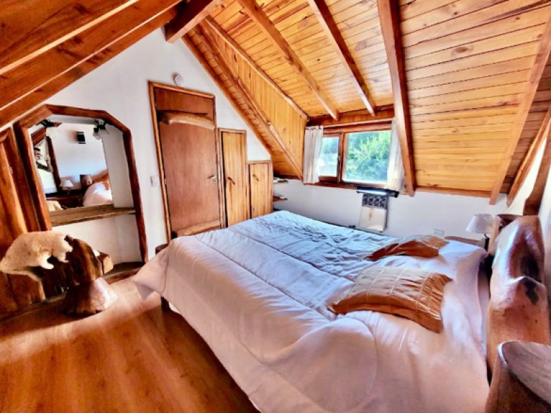 Rústicas columnas de ciprés nativo se erigen en su interior invadiendo de amaderados aromas los atardeceres barilochenses.